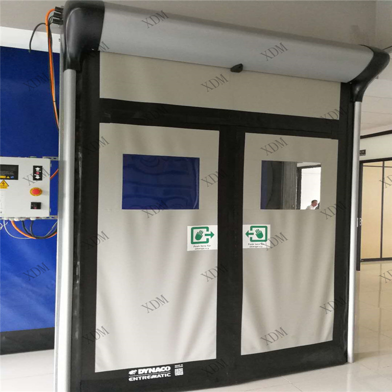 启航彩逃生快速门控制方式:当人员进入有效区域内(30米),按遥控器控制快速门门体打开。