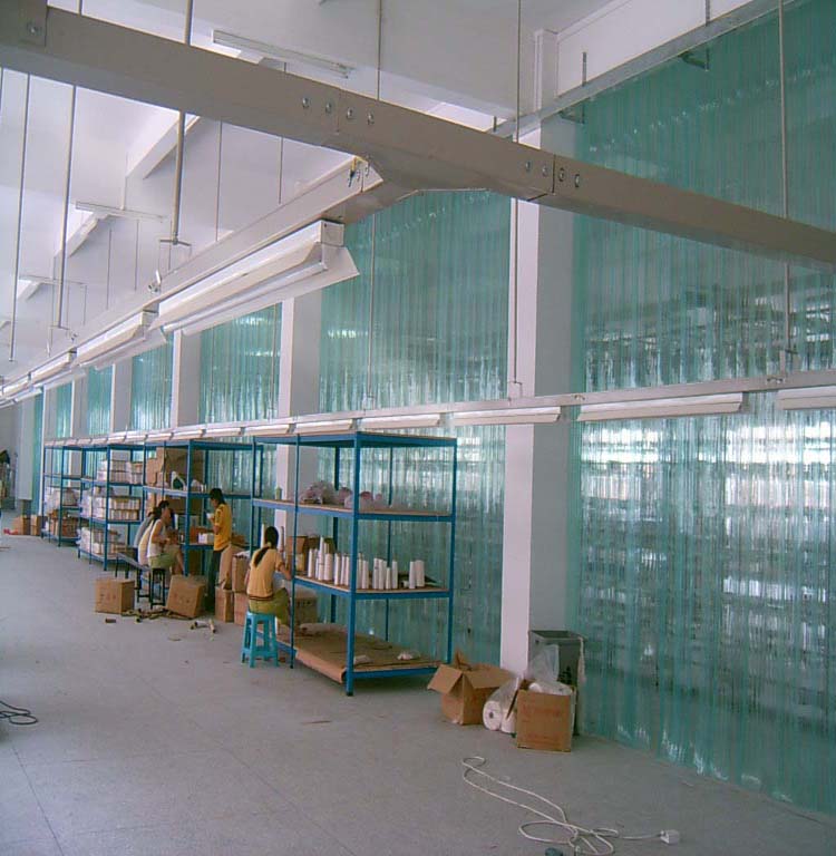 2.实现多机能隔间PVC磁性门帘,使任何工厂或仓库能简易、迅速地实现多机能隔间{作业场、办公室、休息室等}不缩限门宽,不占用空间,对厂库内的有限空间,作较有效的配置运用。